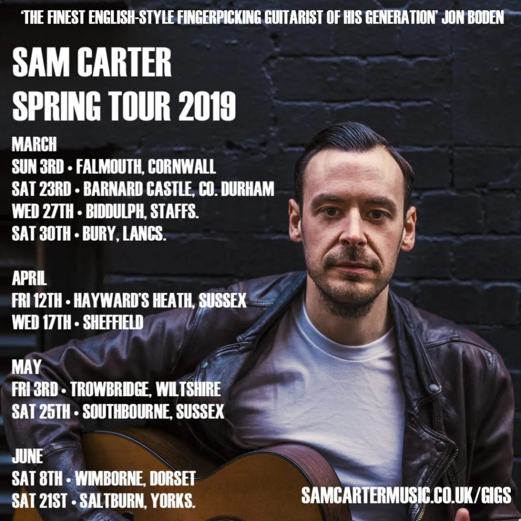 Sam’s spring tour kicks off this weekend at The Tolmen Centre in Cornwall. Sam will be playing new songs written for a forthcoming release later in the year as well as live favourites from his back catalogue. Grab your tickets and come along!